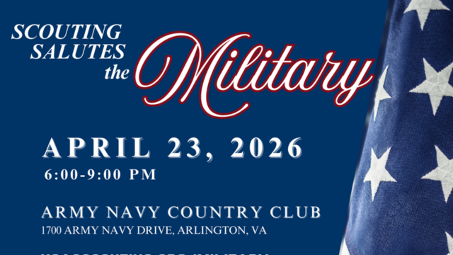 Join us on Thursday, April 23, 2026, from 6–9 PM at Army Navy Country Club in Arlington, VA, for Scouting Salutes the Military—a powerful evening honoring the service, sacrifice, and leadership of our military community.